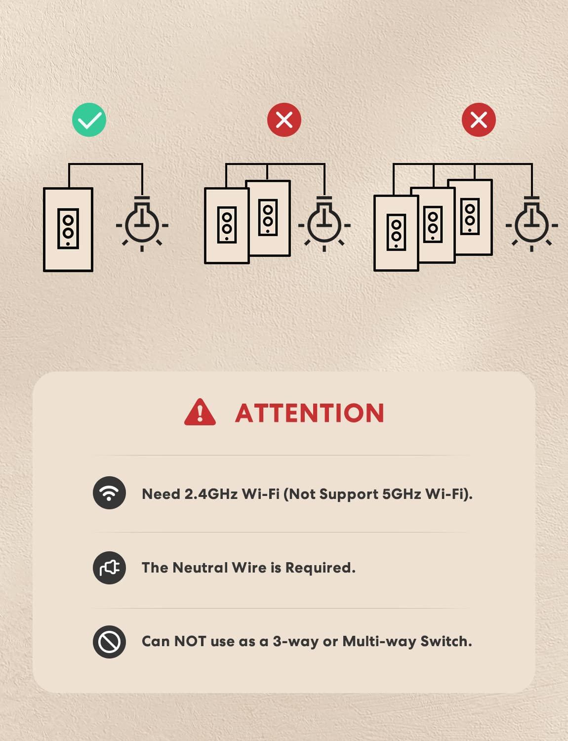 NEUTRAL WIRE REQUIRED FOR INSTALLATION: If your house is not equipped with a neutral wire, the meross dimmer switch will not work. Please make sure your electrical box has a neutral wire (white color) before purchasing. If you are not sure, please send us a photo of the inner part of your electrical box. We can check it for you timely.