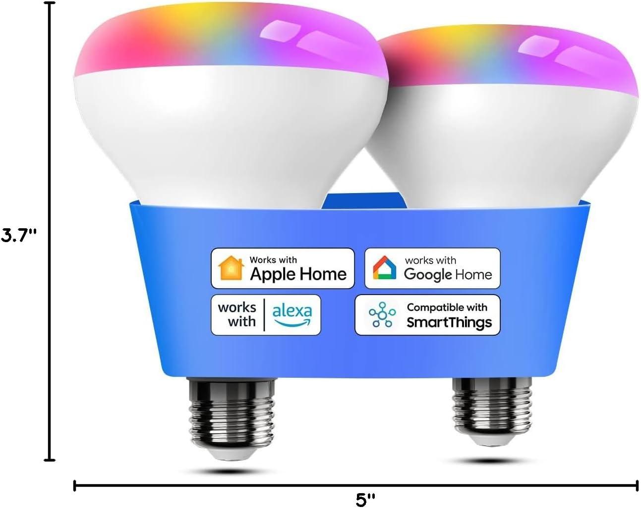Meross Smart Light Bulb, BR30 Flood WiFi LED Bulbs Compatible with Apple HomeKit, Alexa, Google Assistant & SmartThings, Dimmable E26 Multicolor 2700K-6500K RGBCW, 1300 Lumens 100W Equivalent, 2 Pack