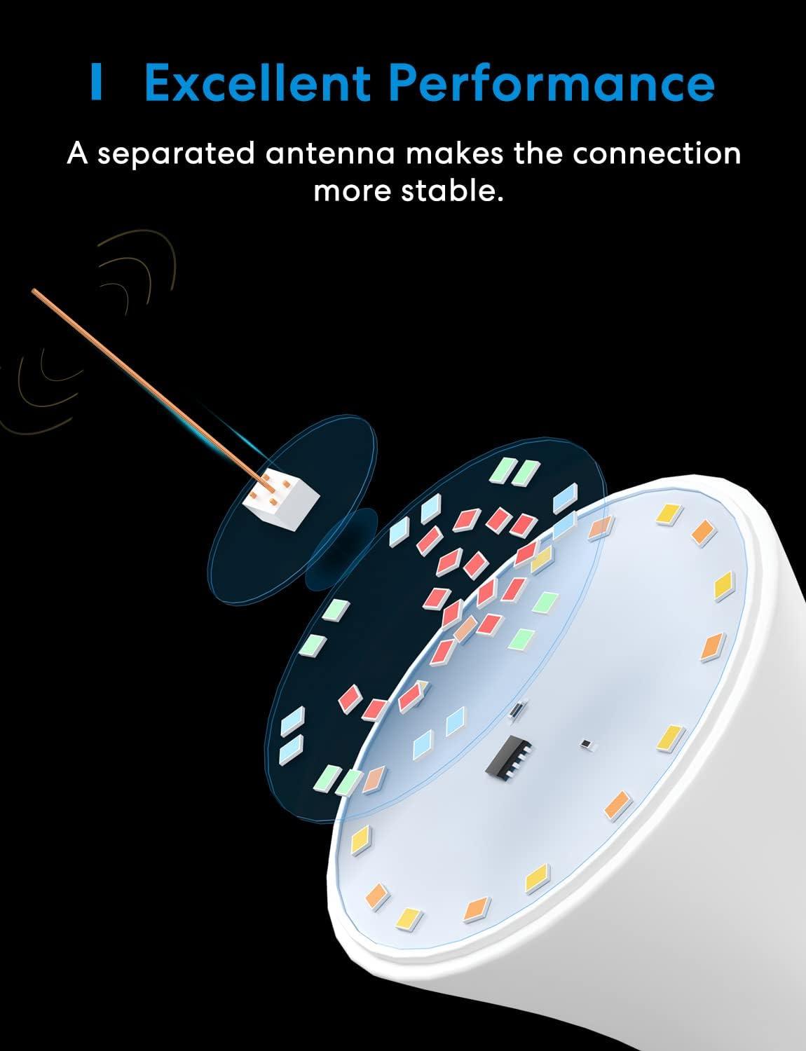 Color Changing Light Bulb: Set the perfect illumination for any occasion. Dimmable led light bulbs, adjust from warm/cool white(2700K~6500K) to multiple RGB colors. e.g. switch on the smart LED light bulbs before arriving home, dim the smart rgb lights to have a party with your friends.