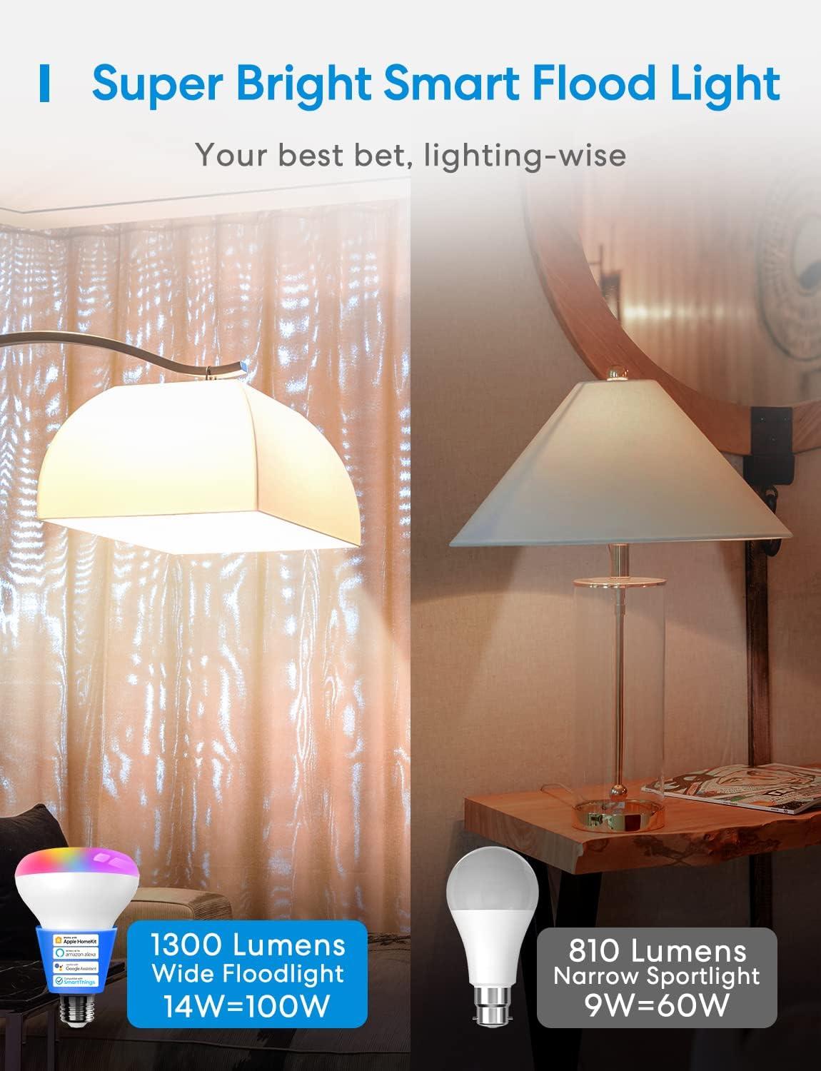 meross Smart Light Bulb, Smart WiFi LED Bulbs Compatible with Apple HomeKit, Siri, Alexa & Google Home, E26 2700K-6500K, 900 Lumens RGBWW 60W Equivalent, 1 Pack(BR30 1 Pack)