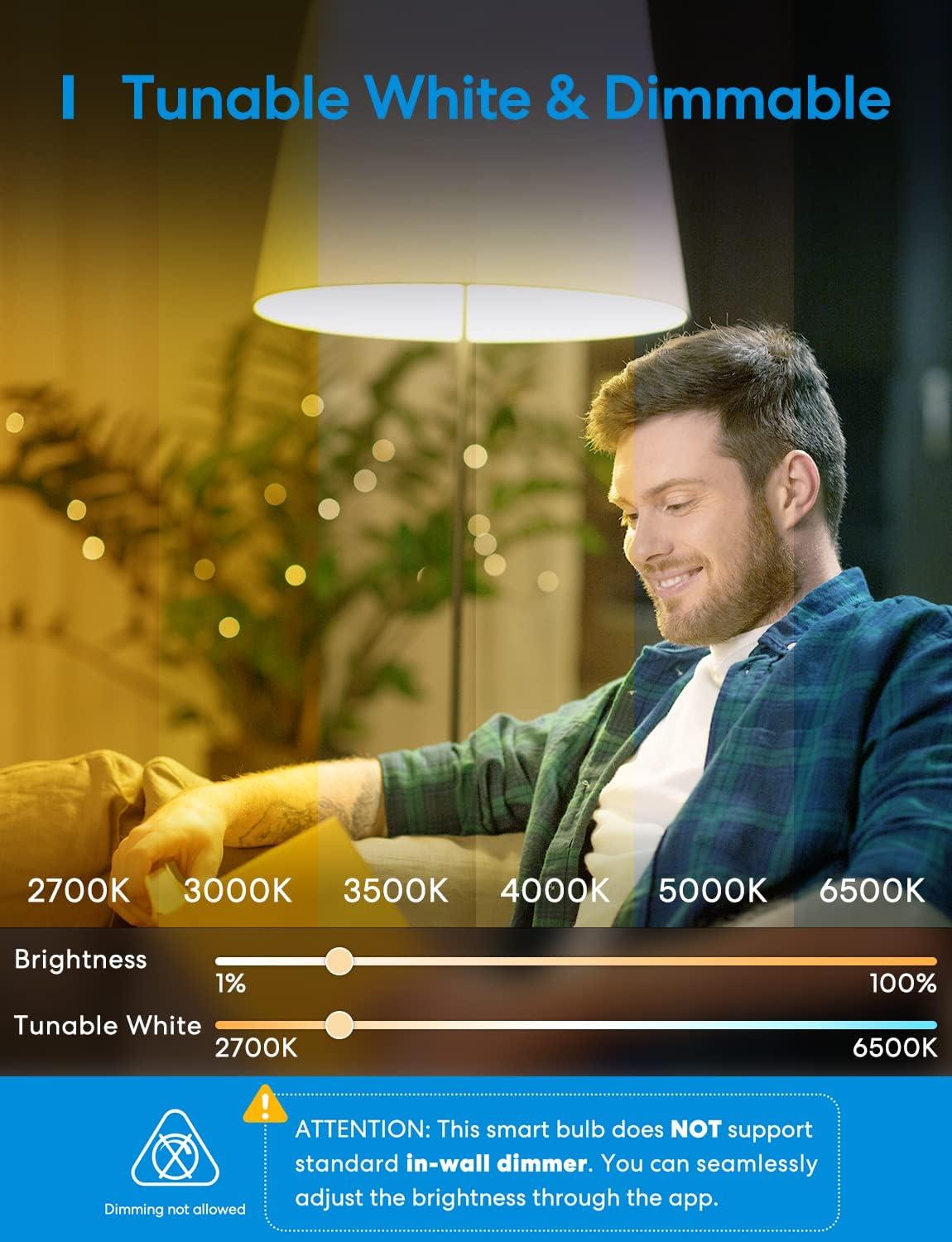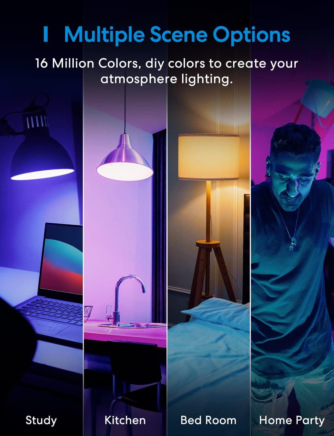 Color Changing Light Bulb: Set the perfect illumination for any occasion. Dimmable led light bulbs, adjust from warm/cool white(2700K~6500K) to multiple RGB colors. e.g. switch on the smart LED light bulbs before arriving home, dim the smart rgb lights to have a party with your friends.