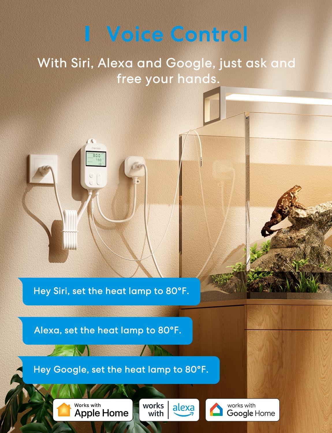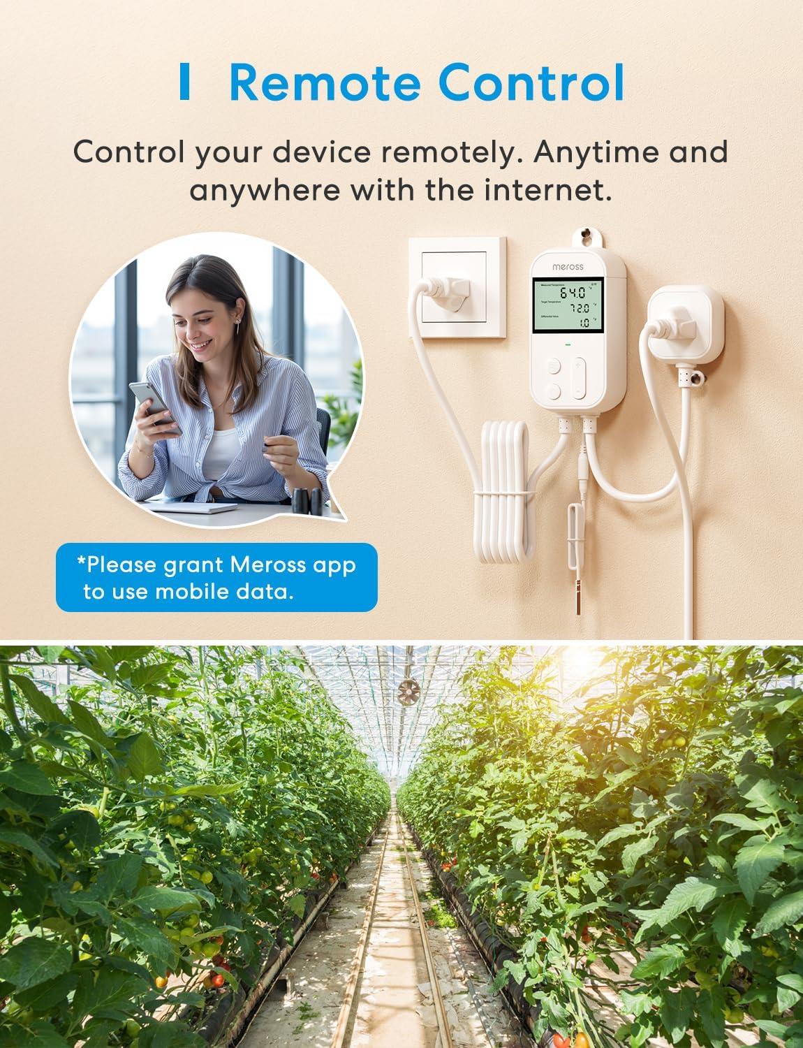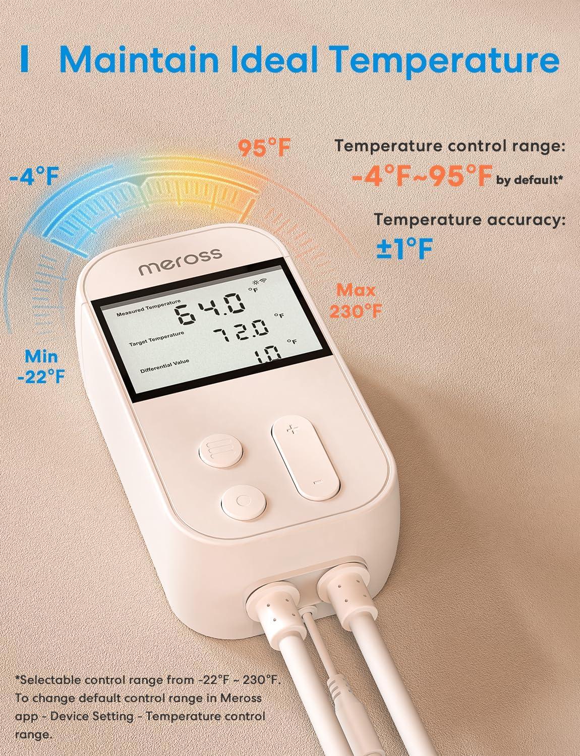 meross Smart Temperature Controller 15A 1800W, Smart Wi-Fi Thermostat Controlled Outlet Plug Works with Apple Home, Alexa, Google Home for Heating Cooling Homebrew Fermentation Reptiles Greenhouse(New Temperature Controller)