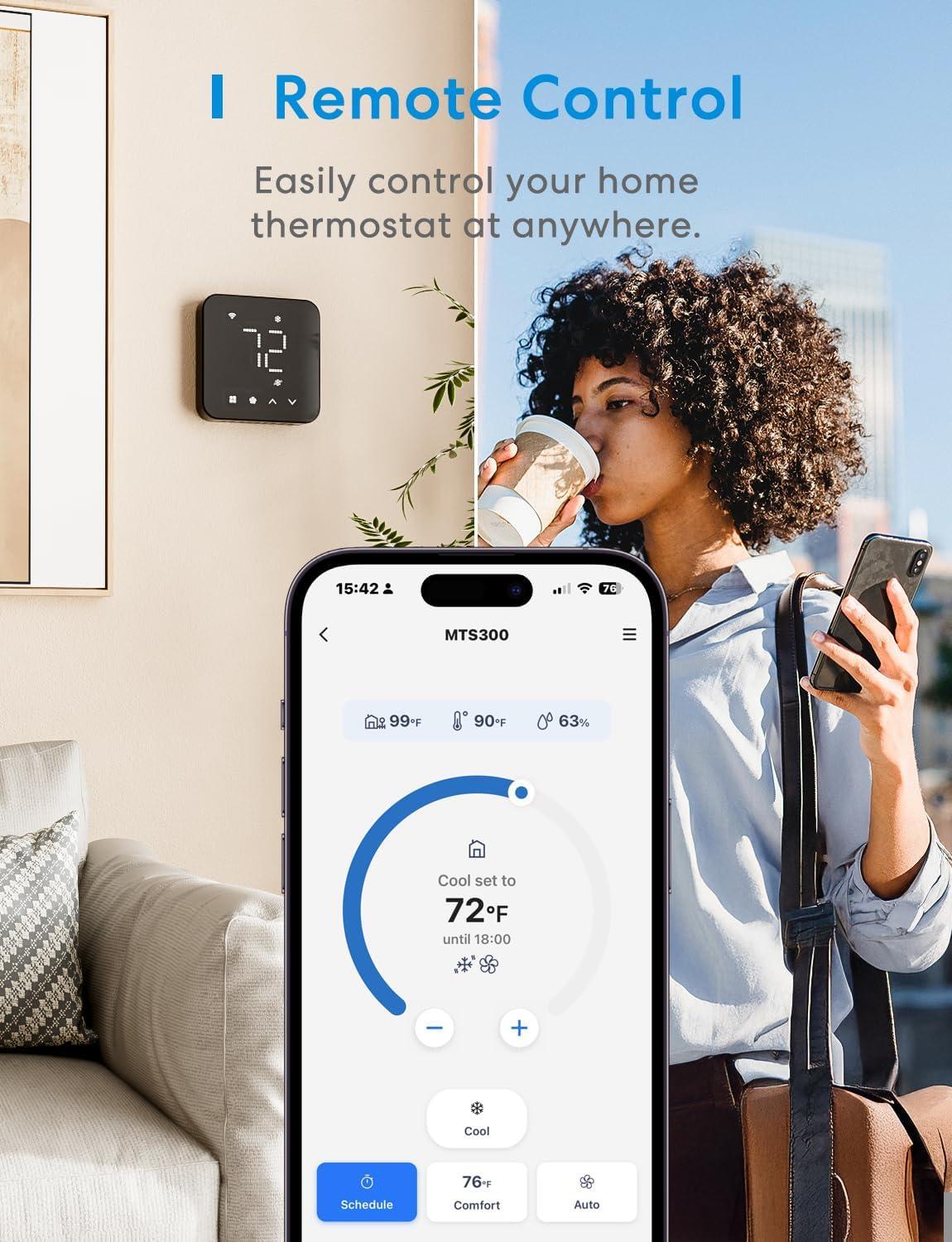 meross Smart Thermostat for Home, WiFi Thermostat Works with Matter, Alexa, Apple Home, Google Assistant, App & Voice Control, 7x24h Scheduling, Energy Saving, C-Wire Required(Black)
