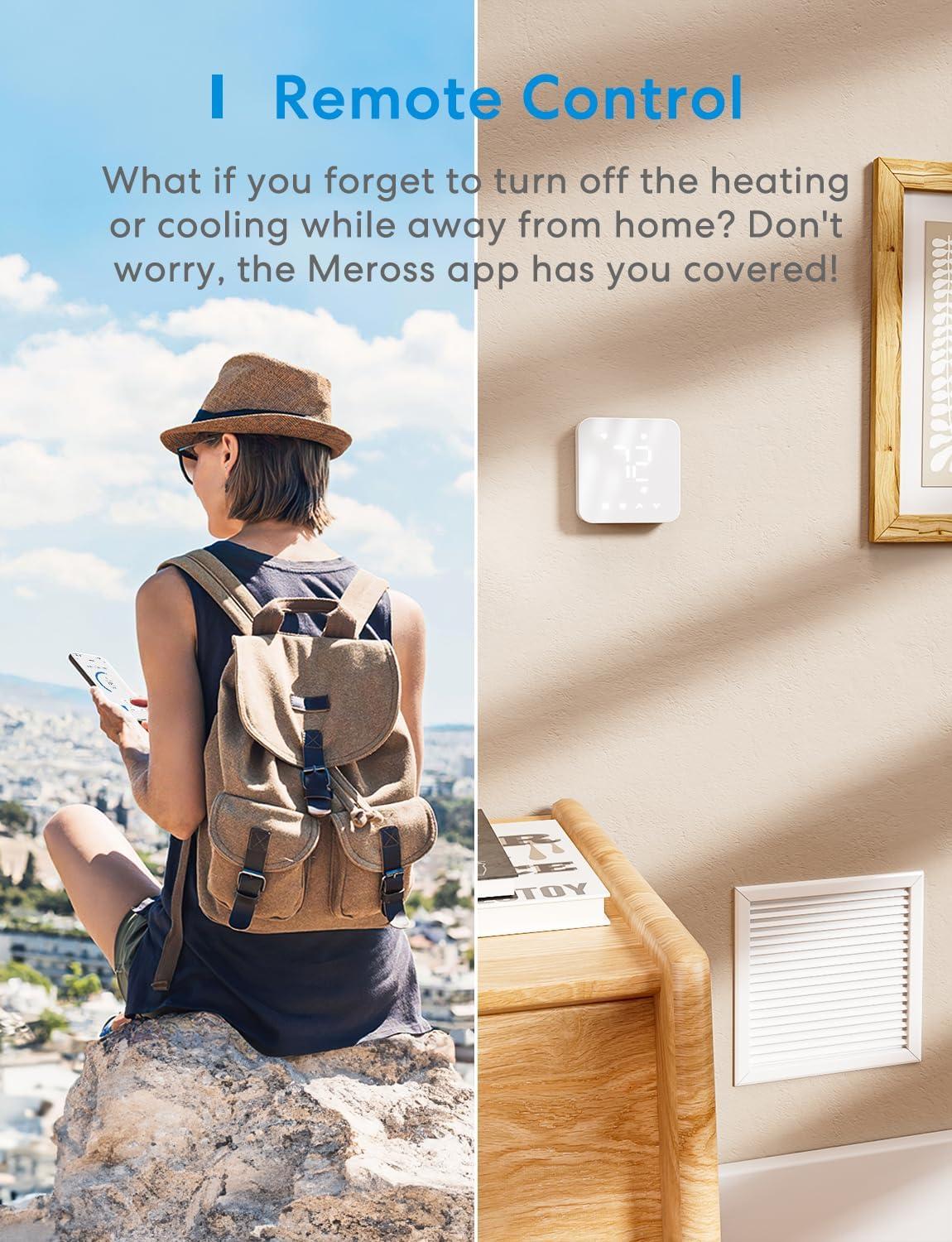 Before Purchasing: Meross smart thermostat for home is suitable for 95% of HVAC systems, including conventional heating and cooling systems, heating/cooling only systems, and heat pumps. Not suitable for electric baseboard heaters. Please check the compatibility before purchasing