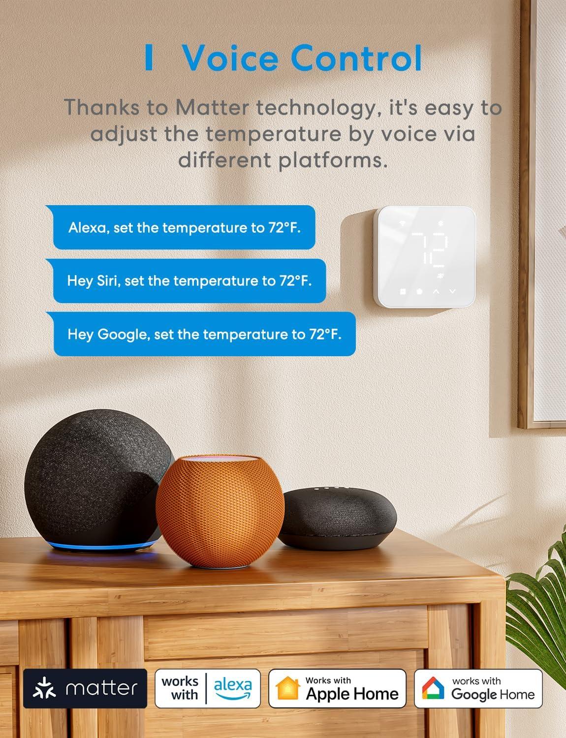 meross Smart Thermostat for Home, WiFi Thermostat Works with Matter, Alexa, Apple Home, Google Assistant, App & Voice Control, 7x24h Scheduling, Energy Saving, C-Wire Required(White)