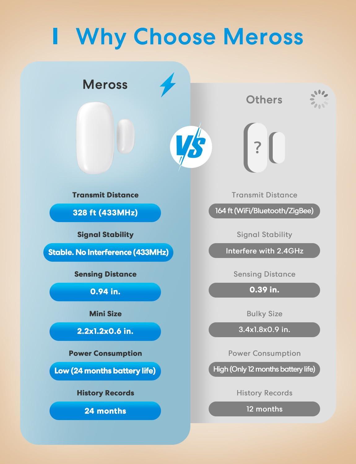 [Real-time Alert Notification] Get alerts immediately on your Meross app, you can stay informed about critical alerts concerning your smart door sensor, no matter where you are – giving you peace of mind and taking action quickly if needed.