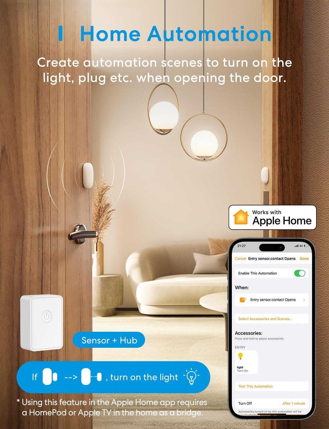 [Hands-Free Voice Control] Enjoy the convenience of hands-free access. Simply ask Siri to check the status of your door sensor – no need to go downstairs or pick up your phone again. You'll always know whether your garage door or home door opening or closing.