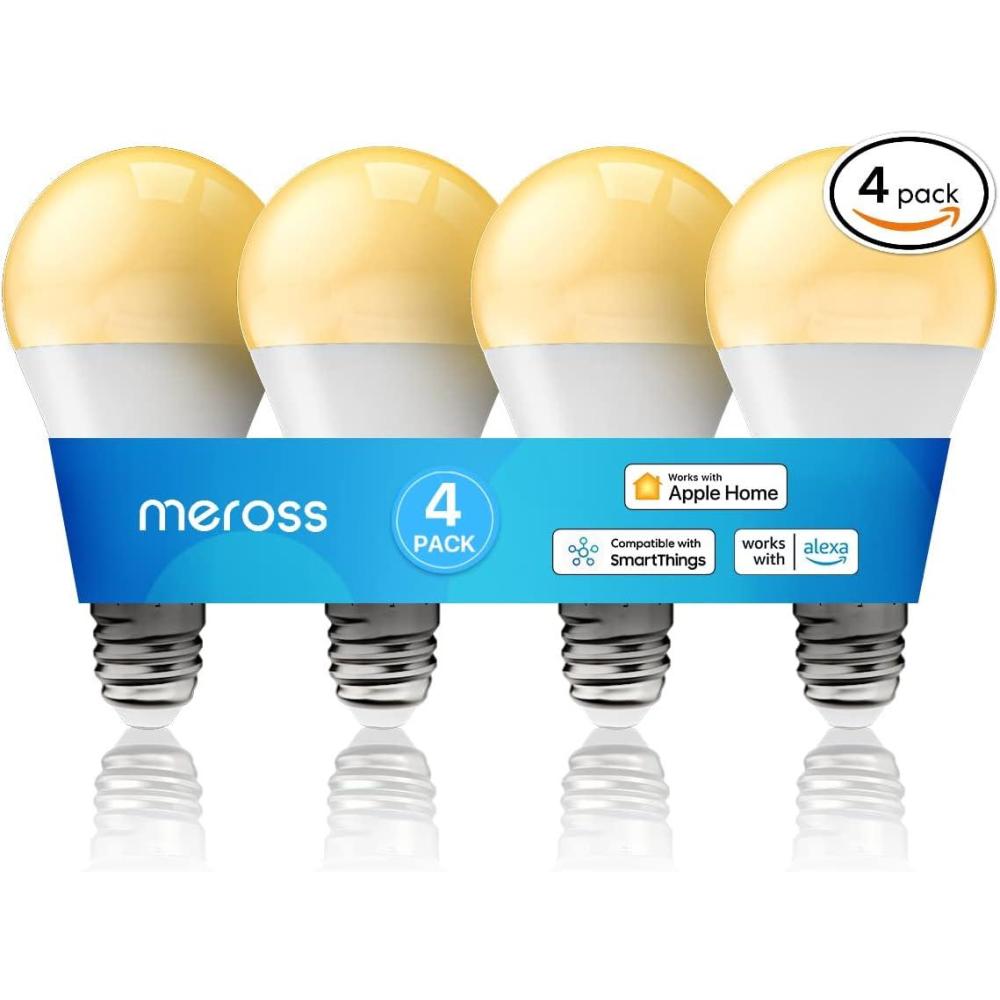 meross Wi-Fi Smart Light Bulb, Color Changing Led Bulbs Compatible with Alexa and Google Home, 2700K-6500K Tunable White, 810 Lumens 60W Equivalent, A19, E26, 2 Pack(HomeKit Dimmable 4 Pack)