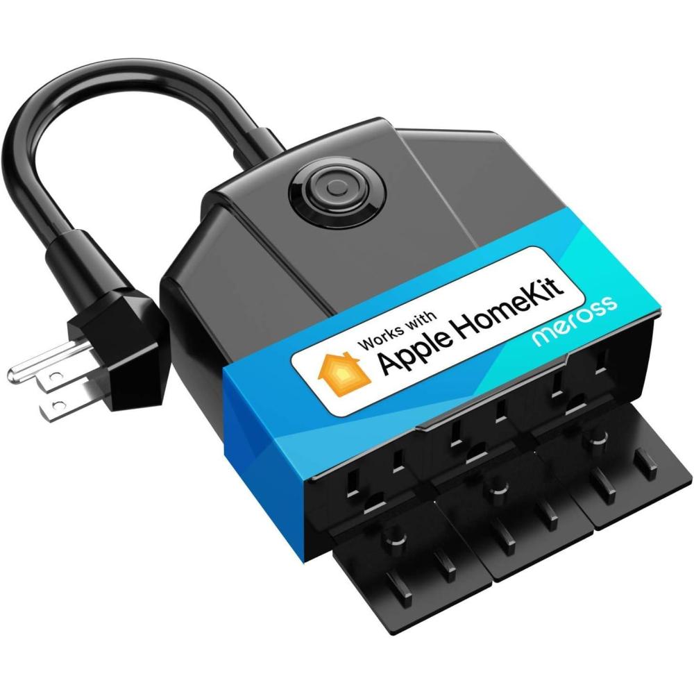 Outdoor Smart Plug, meross Outdoor Wi-Fi Outlet with 3 Independent Sockets Compatible with Apple Homekit, Alexa and SmartThings, Voice & Remote Control, Timer, 2.4 GHz only,Black(HomeKit 3 Outlets)